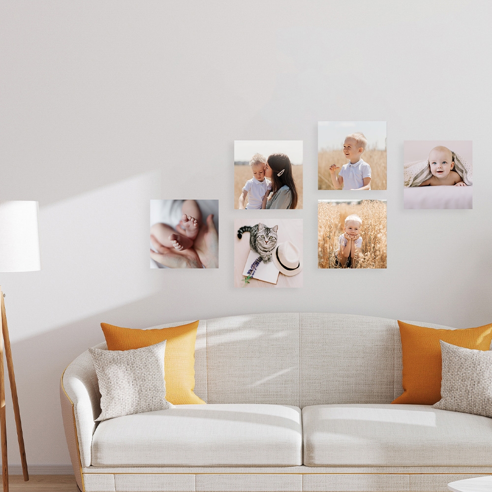 Decora a tua sala com um mural de quadros, criando uma parede de recordações e momentos especiais. No escritório, personaliza o ambiente com fotografias inspiradoras ou frases motivacionais. No quarto, torna o espaço mais acolhedor com um mural de fotos de família ou momentos românticos.
