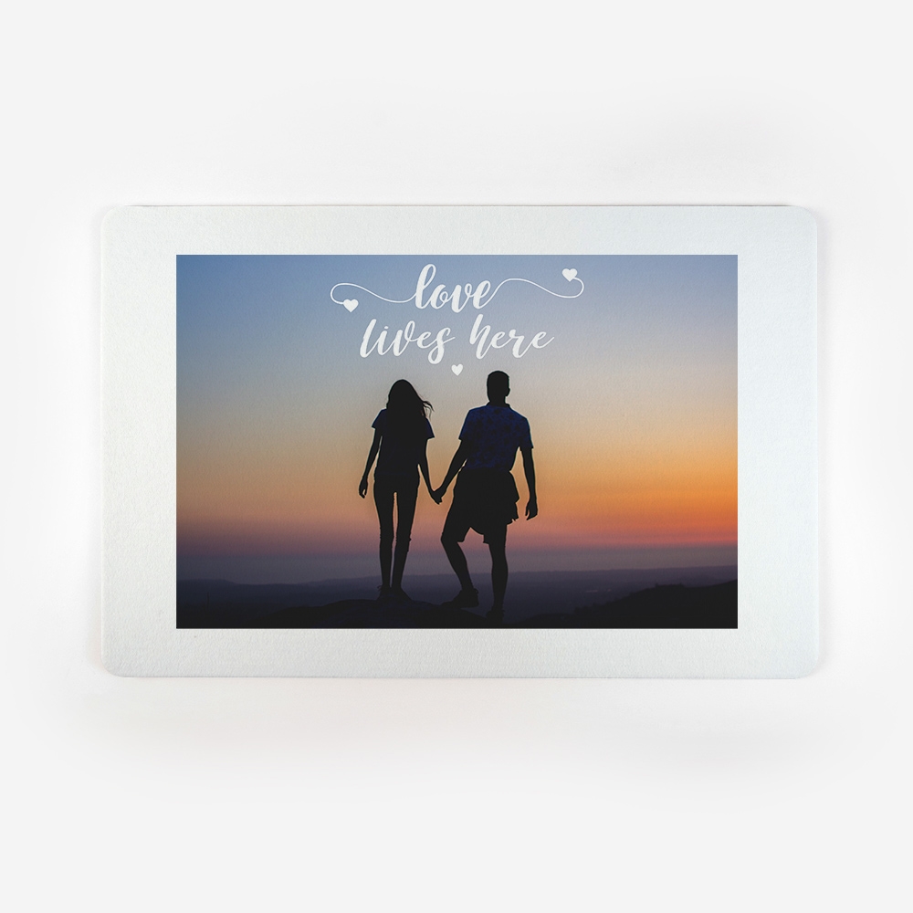 Tamanho 60x40 cm com personalização parcial num dos lados.
